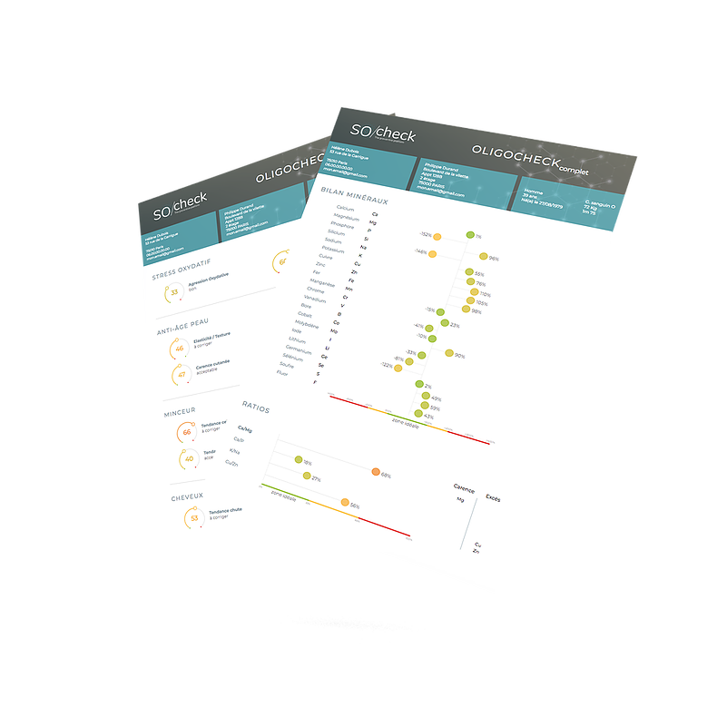1. Badanie Oligo-check to nieinwazyjna metoda pozwalająca na diagnostykę poziomu minerałów, mikroelementów, witamin, stresu oksydacyjnego i zatrucia metalami ciężkimi w organizmie. Pomiar wykonywany jest na dłoni urządzeniem fotospektrometrycznym. Badanie określa pracę naszych jelit, równowagę kwasowo-zasadową, stan trawienia i zanieczyszczenia wątroby. Test przedstawia poziom pracy systemu odpornościowego, nerwowego i hormonalnego. Badanie określa także jakość skóry antyaging, stan włosów, paznokci i stawów. Wynik otrzymywany jest po trzech minutach. Znajdziemy w nim zalecenia potrzebne do regulacji i utrzymania prawidłowej homeostazy organizmu. Badanie Oligo-check jest pierwszym badaniem tkanki miękkiej bez konieczności analizy włosa.